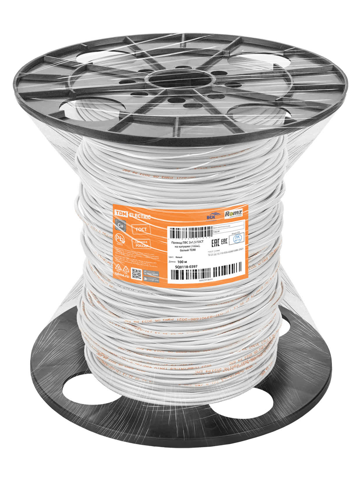 Tdm SQ0118-0397 Провод ПВС 2х1,5 ГОСТ на катушке (100м)