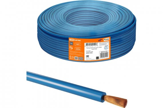Провод ПуГВ 1х6,0 ГОСТ на катушке (100м), синий TDM