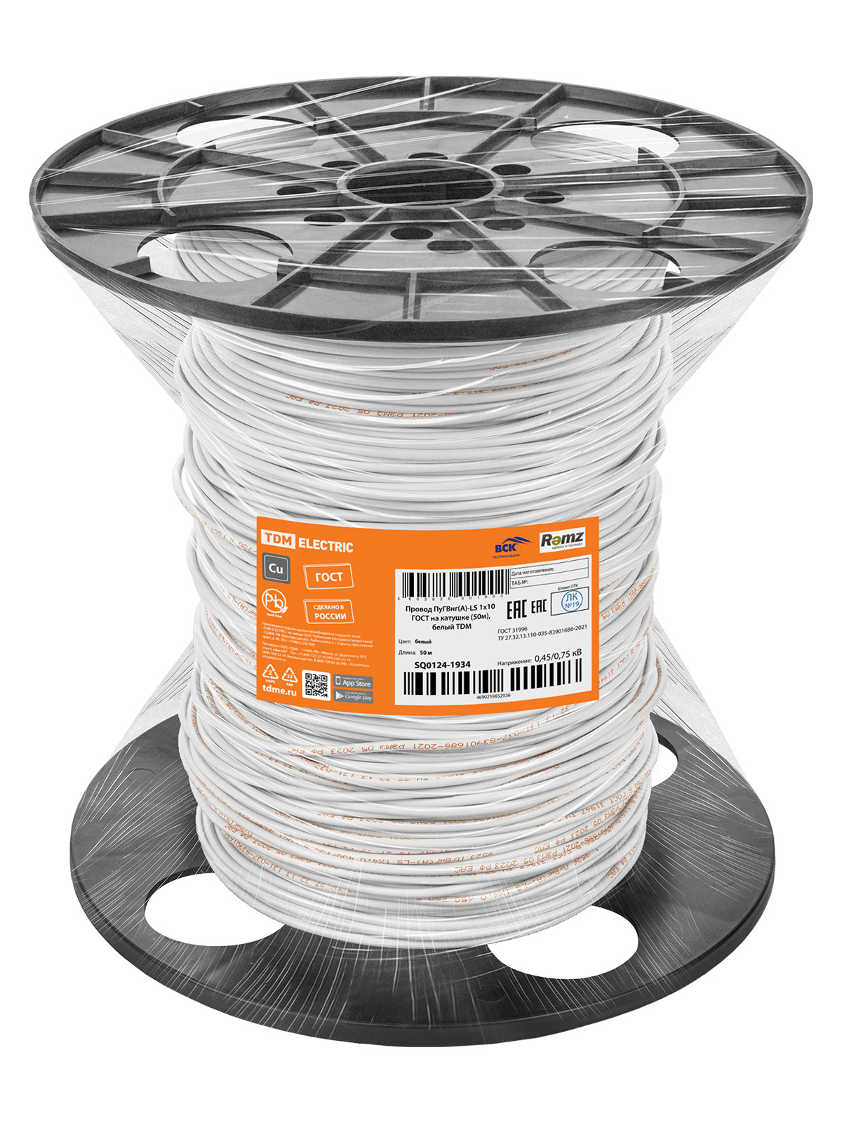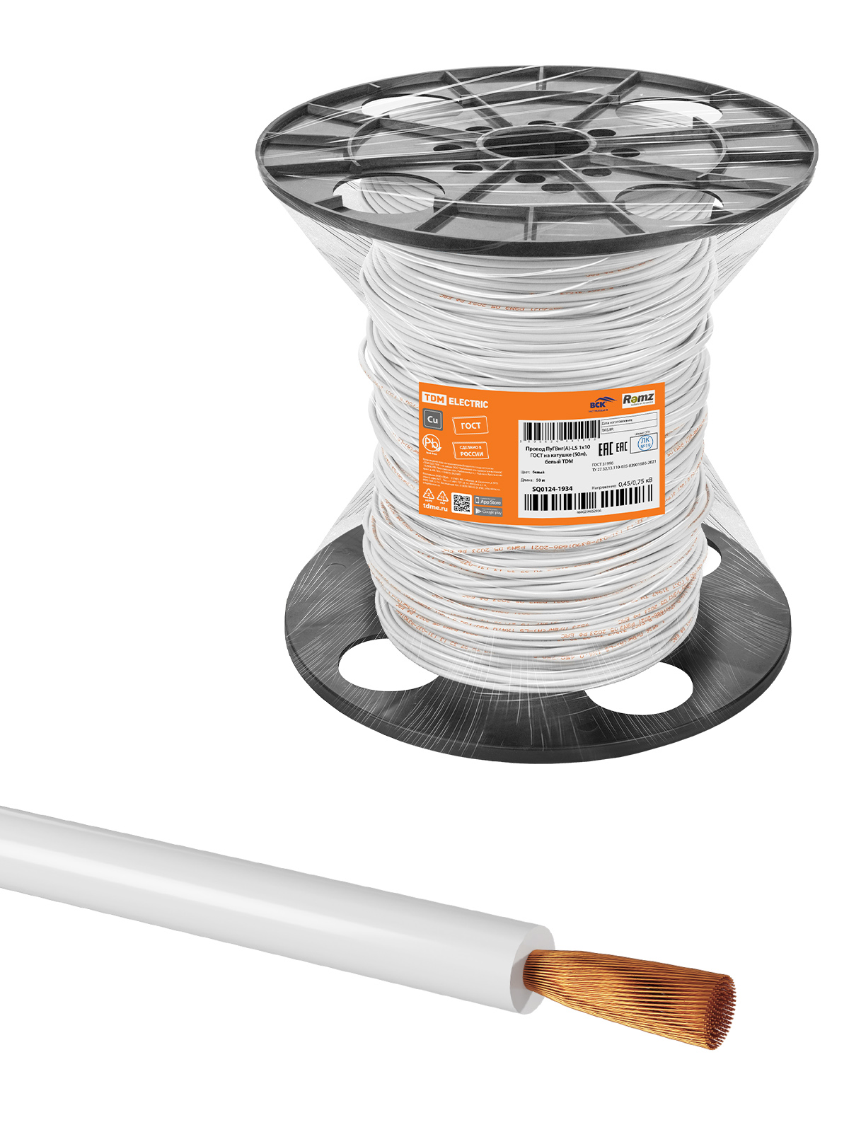 Провод ПуГВнг(А)-LS 1х10 ГОСТ на катушке (50м), белый TDM
