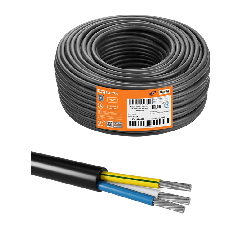 Tdm SQ0144-0008 Кабель АсВВГ-П нг(А)-LS 3х6 ок(N,PE)-0,66 ГОСТ (100м)