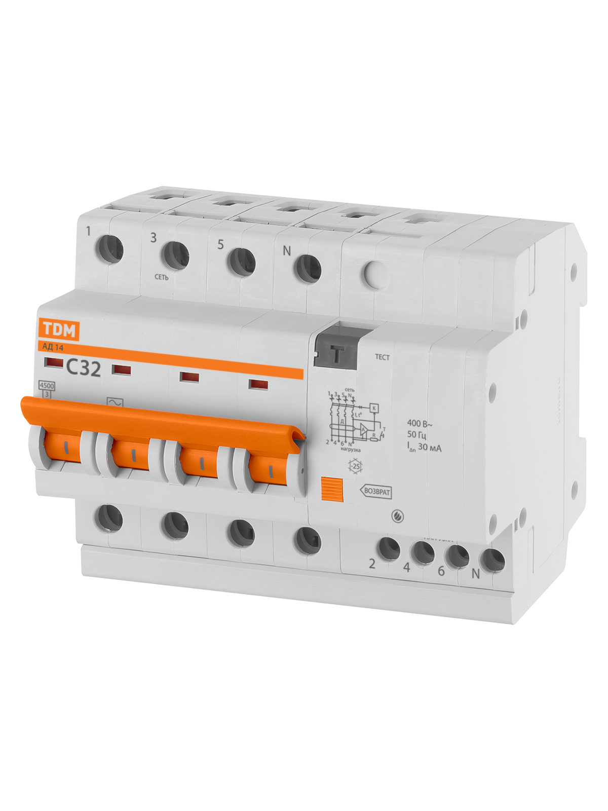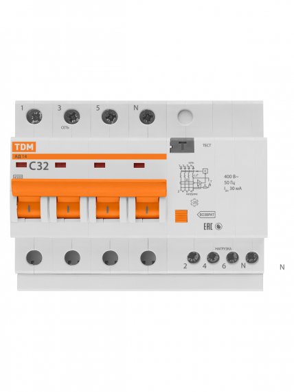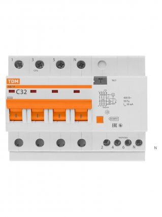Диф.автомат АД14 4Р 32А 30мА TDM