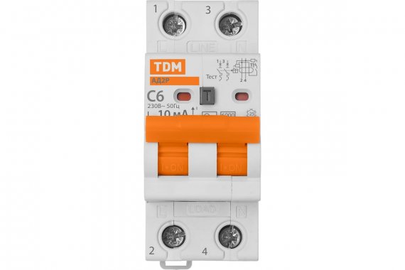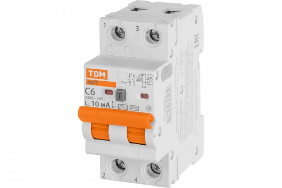 Tdm SQ0204-0601 Диф.автомат АД2P 2Р С6 10мА 6кА тип АС
