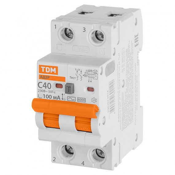 Tdm SQ0204-0618 Диф.автомат АД2P 2Р С40 100мА 6кА тип АС
