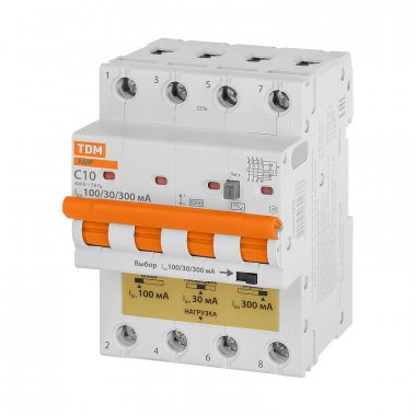 Tdm SQ0204-0628 Диф.автомат АД4P 4Р С10 30-100-300мА 6кА тип АС