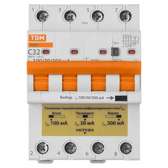 Tdm SQ0204-0632 Диф.автомат АД4P 4Р С32 30-100-300мА 6кА тип АС