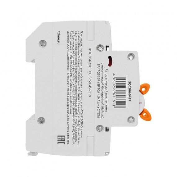 Tdm SQ0206-0417 Авт. выкл. с мех. блок. (байпас) ВА47-29Б 3Р+3Р 10А 4,5кА х-ка C