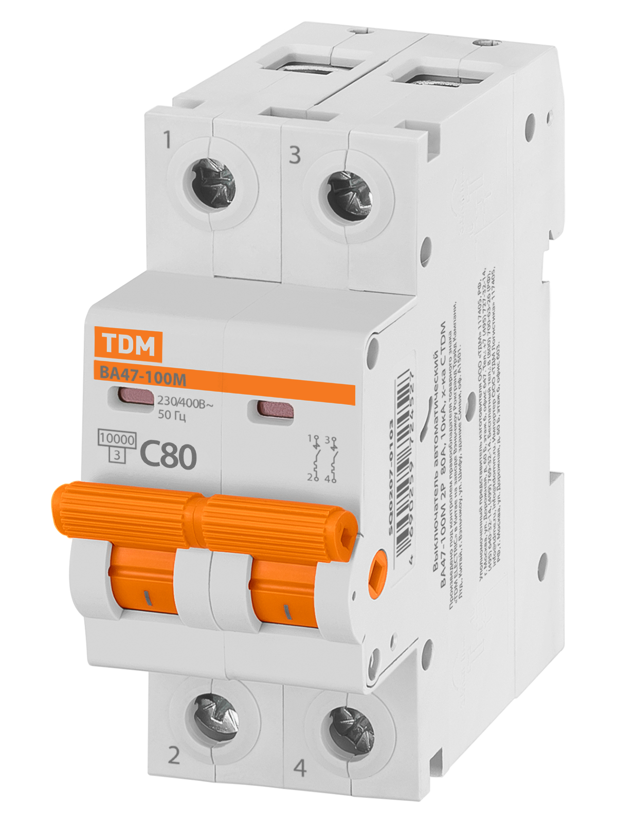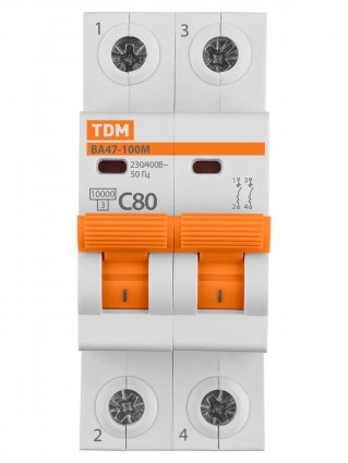 Авт. выкл. ВА47-100М 2Р 80А 10кА х-ка C TDM