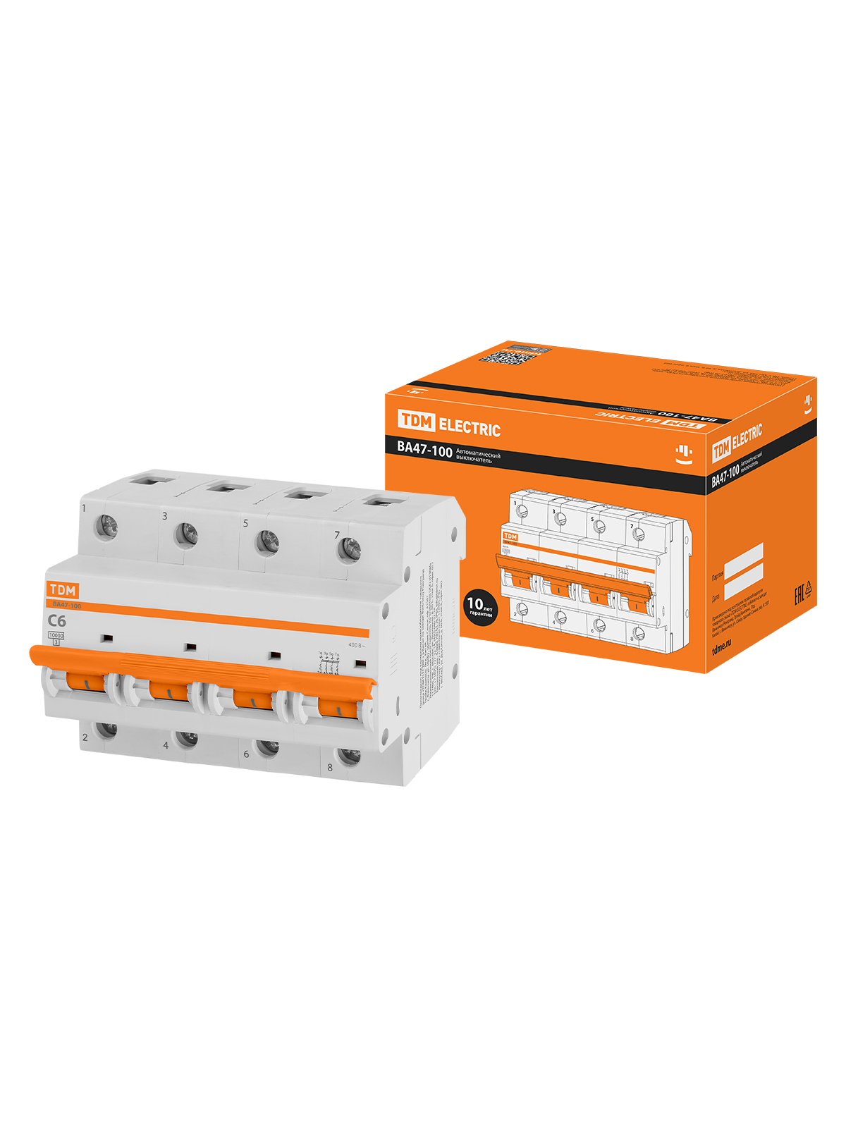 Авт. выкл. ВА47-100 4Р 6А 10кА х-ка С TDM