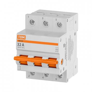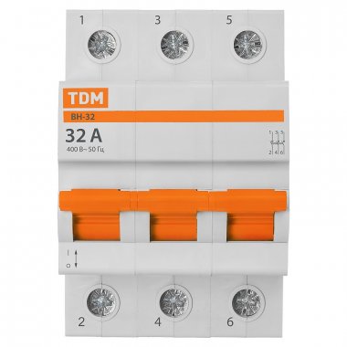 Выключатель нагрузки ВН-32 3P 32A от TDM идеально подходит для проведения тока в нормальном режиме и частого оперативного включения и выключения электрической цепи. Этот продукт может использоваться в жилых домах и общественных зданиях благодаря своей облегченной конструкции и пластиковому корпусу, который не поддерживает горение.