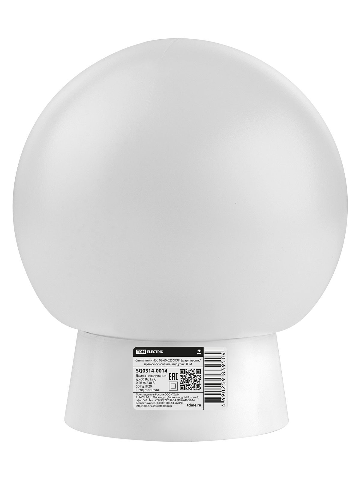 Светильник НББ 03-60-025 УХЛ4 (шар пластик/прямое основание) инд.упак. TDM