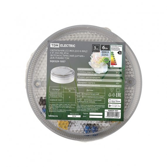 Светильник LED ЖКХ ДБО-6-ФАД1 6 Вт, 850 лм, IP54 (фотоакустический датчик+деж.режим) TDM