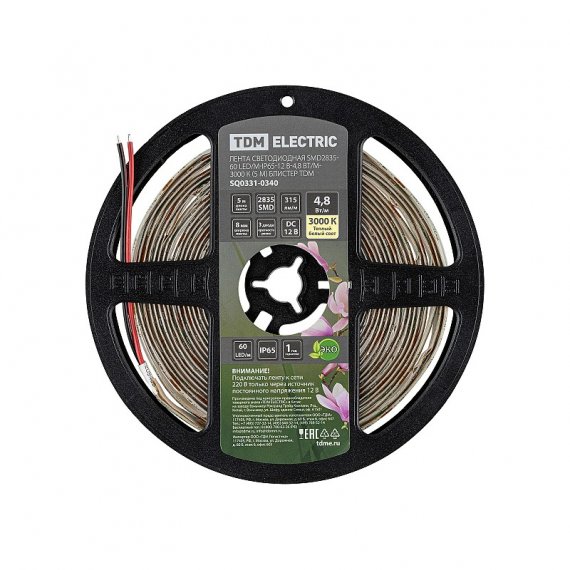 Tdm SQ0331-0340 Лента светодиодная SMD2835-60 LED/м-IP65-12 В-4,8 Вт/м-3000 К