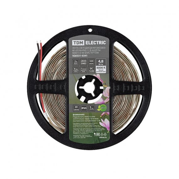 Tdm SQ0331-0341 Лента светодиодная SMD2835-60 LED/м-IP65-12 В-4,8 Вт/м-6000 К