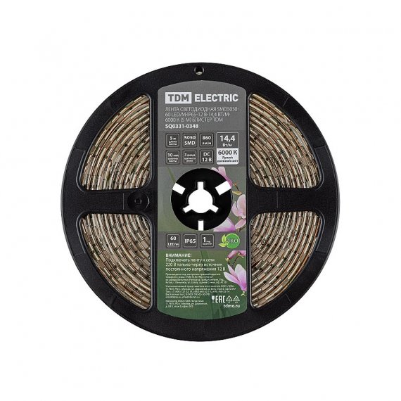 Tdm SQ0331-0348 Лента светодиодная SMD5050-60 LED/м-IP65-12 В-14,4 Вт/м-6000 К