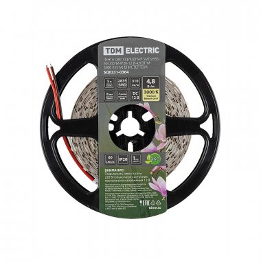 Tdm SQ0331-0364 Лента светодиодная SMD2835-60 LED/м-IP20-12 В-4,8 Вт/м-3000 К