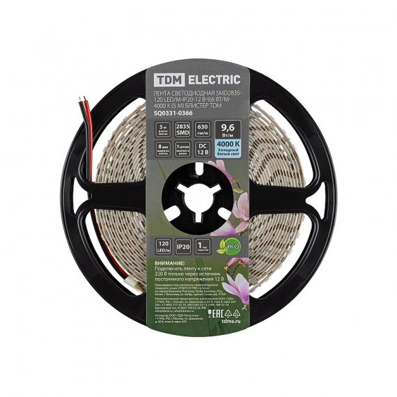 Tdm SQ0331-0366 Лента светодиодная SMD2835-120 LED/м-IP20-12 В-9,6 Вт/м-4000 К