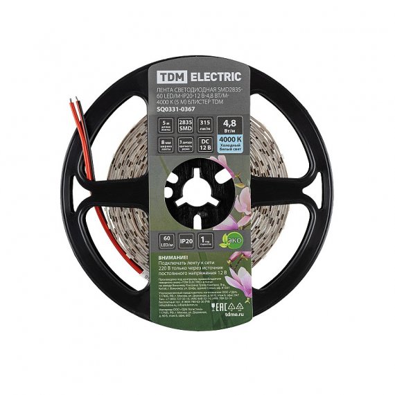 Tdm SQ0331-0367 Лента светодиодная SMD2835-60 LED/м-IP20-12 В-4,8 Вт/м-4000 К