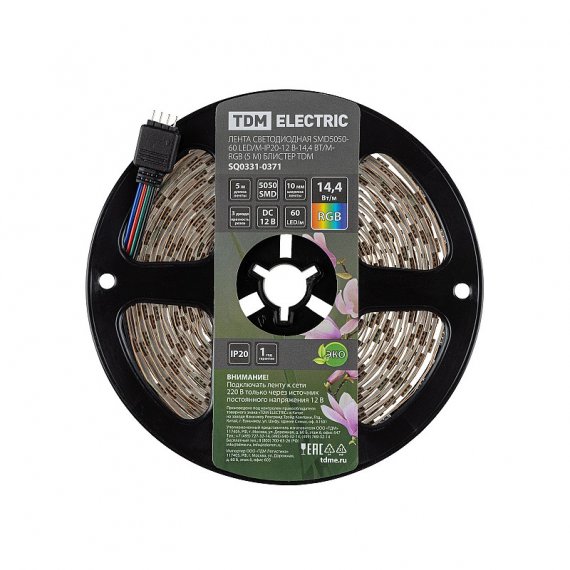 Tdm SQ0331-0371 Лента светодиодная SMD5050-60 LED/м-IP20-12 В-14,4 Вт/м-RGB