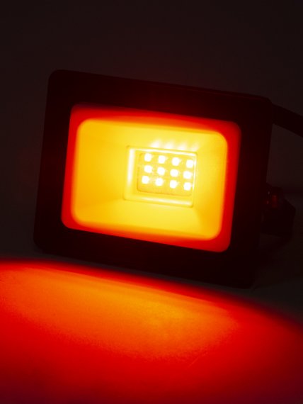 Прожектор светодиодный СДО-04-010Н-К (красный свет) 10 Вт, IP65, черный, Народный
