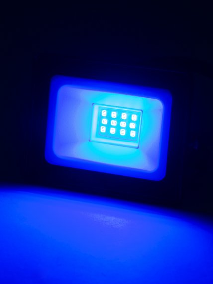 Прожектор светодиодный СДО-04-010Н-С (синий свет) 10 Вт, IP65, черный, Народный