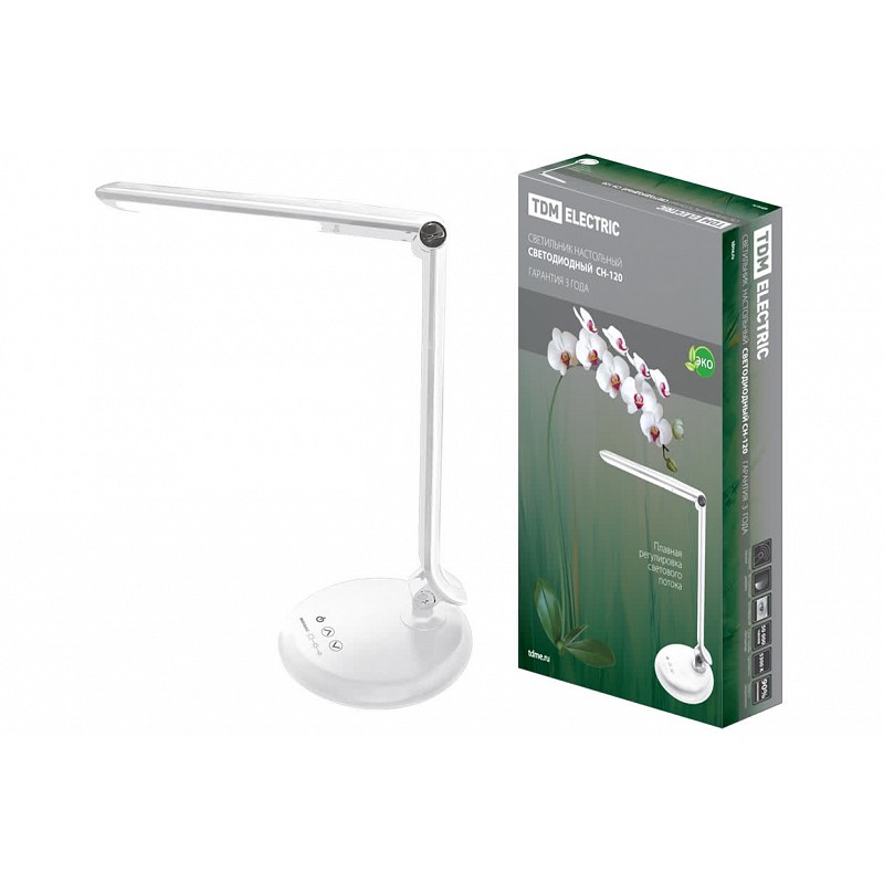 Светильник светодиодный настольный СН-120, складной, сенсор-диммер, 220 В, 8 Вт, 5300 К белый TDM предназначен для местного освещения рабочего пространства и используется как декоративный элемент интерьера.