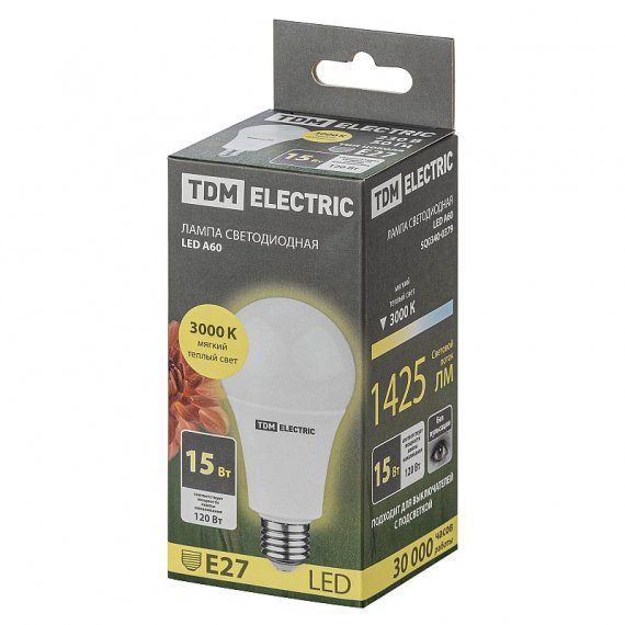 Tdm SQ0340-0379 Лампа светодиодная А60 15 Вт, 230 В, 3000 К, E27