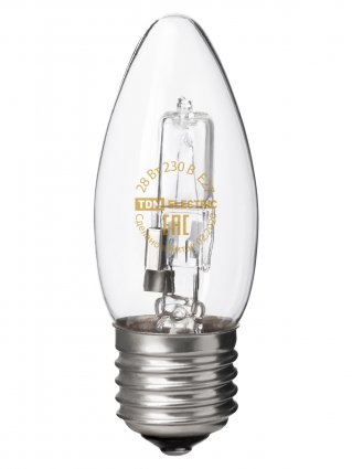 Лампа галогенная "Свеча" прозрачная 28 Вт-230 В-Е27 TDM