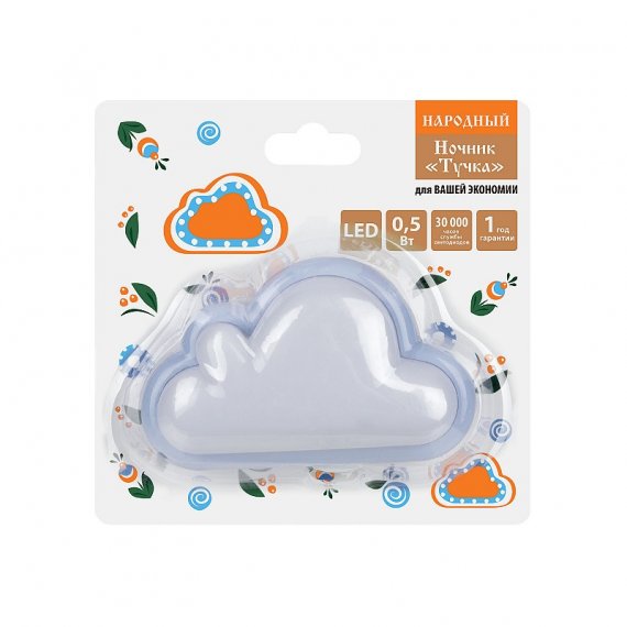 Ночник "Тучка" с выключателем, 0,5 Вт, 220 В Народный