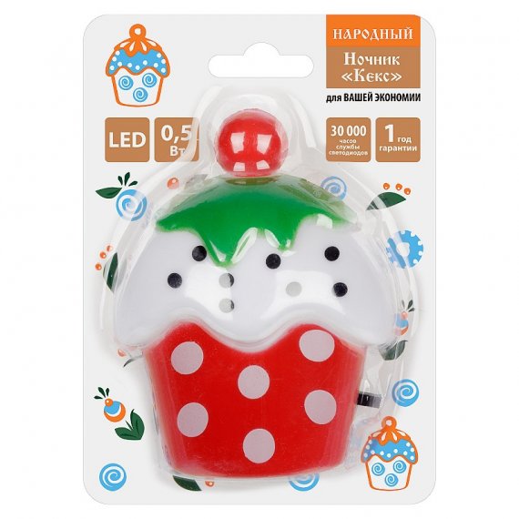 Ночник "Кекс" с выключателем, 0,5 Вт, 220 В Народный