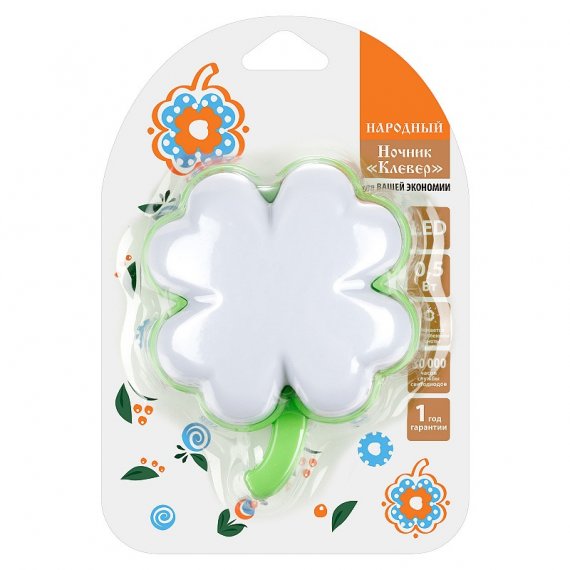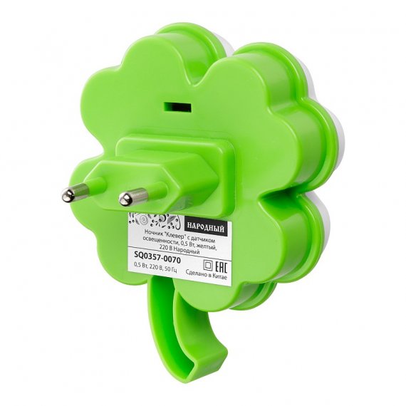 Ночник "Клевер" с датчиком освещенности, 0,5 Вт, зеленый, 220 В Народный