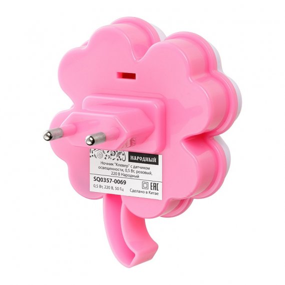Ночник "Клевер" с датчиком освещенности, 0,5 Вт, розовый, 220 В Народный