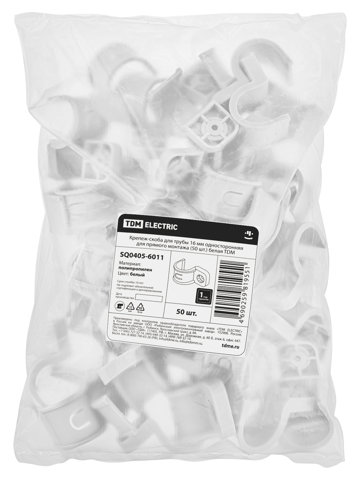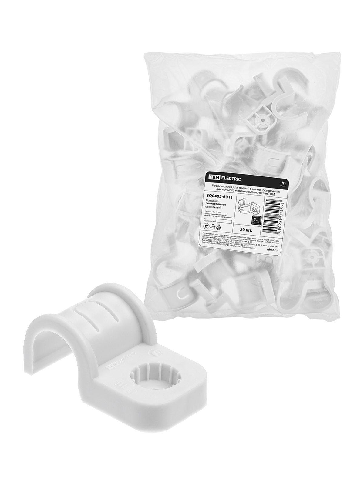 Крепеж-скоба для трубы 16 мм односторонняя для прямого монтажа (50 шт.) белая TDM