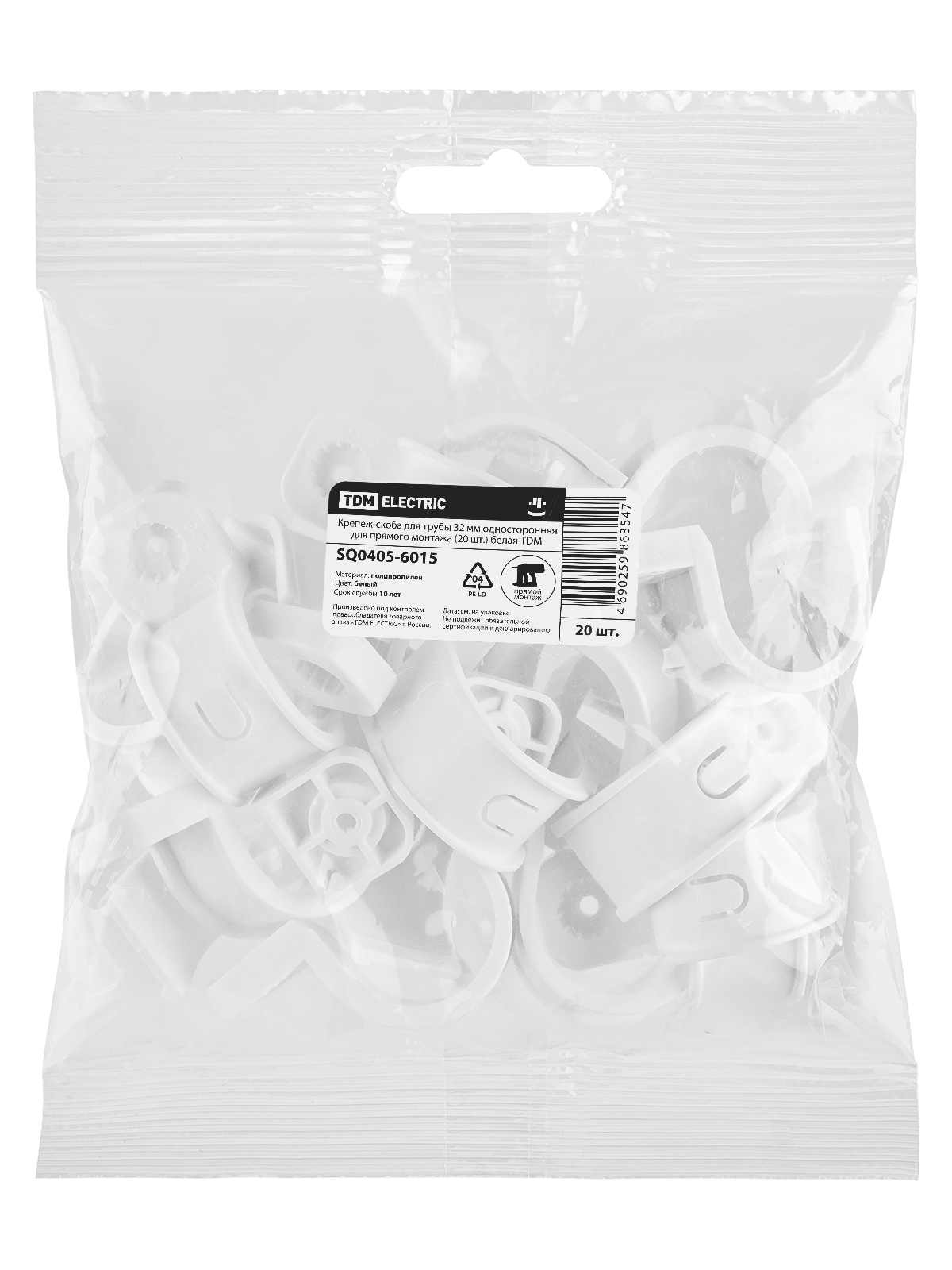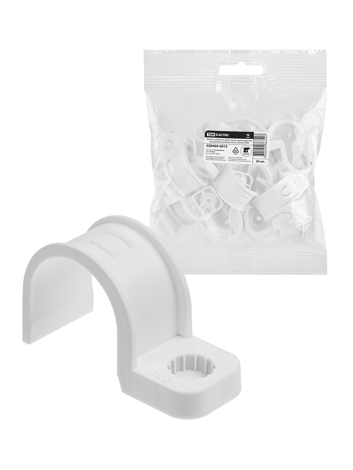 Крепеж-скоба для трубы 32 мм односторонняя для прямого монтажа (20 шт.) белая TDM