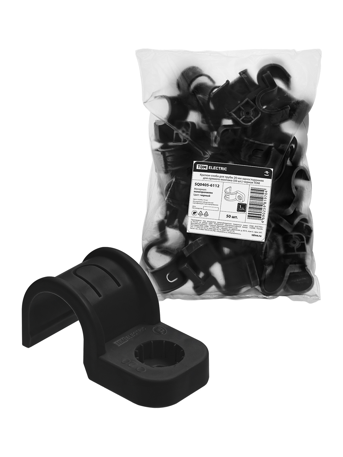 Крепеж-скоба для трубы 20 мм односторонняя для прямого монтажа (50 шт.) черная TDM