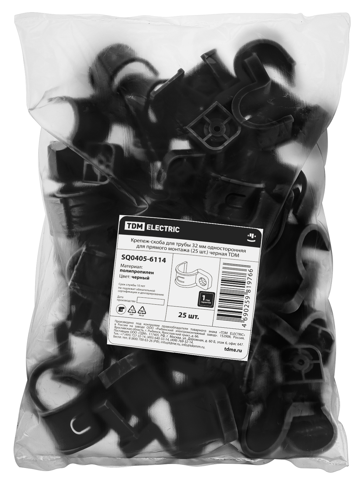 Крепеж-скоба для трубы 32 мм односторонняя для прямого монтажа (25 шт.) черная TDM