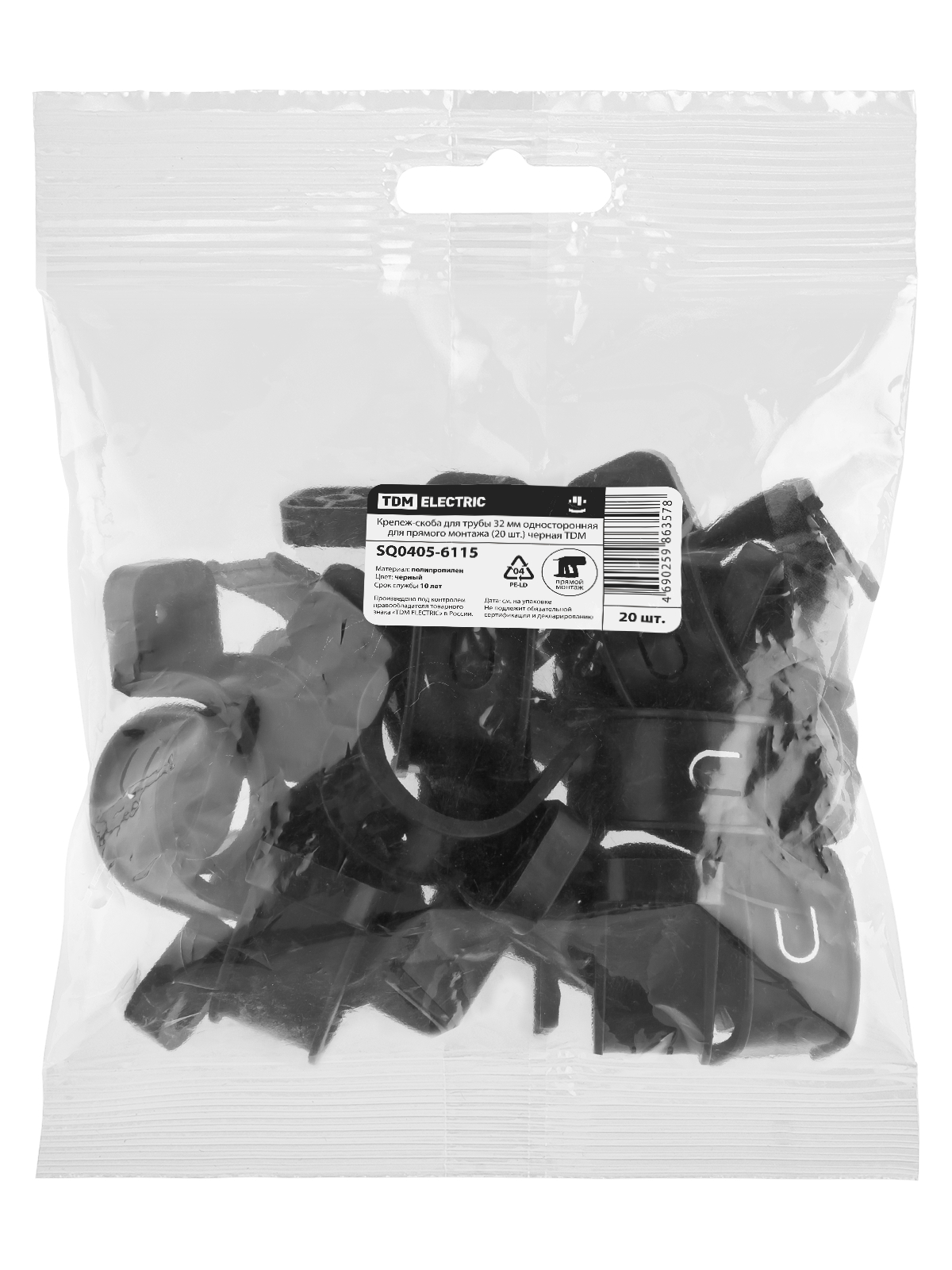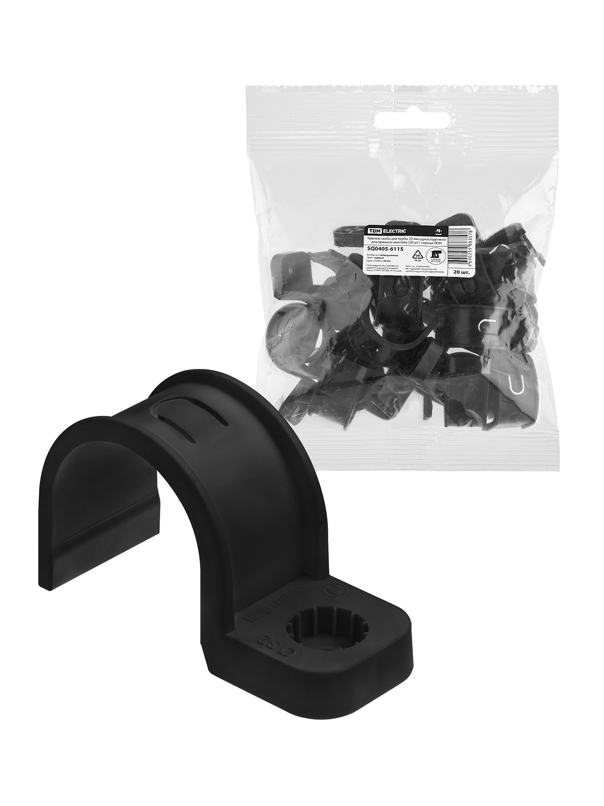 Крепеж-скоба для трубы 32 мм односторонняя для прямого монтажа (20 шт.) черная TDM