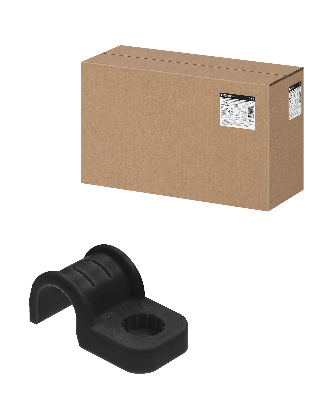 Крепеж-скоба для трубы 16 мм односторонняя для прямого монтажа (650 шт.) черная TDM
