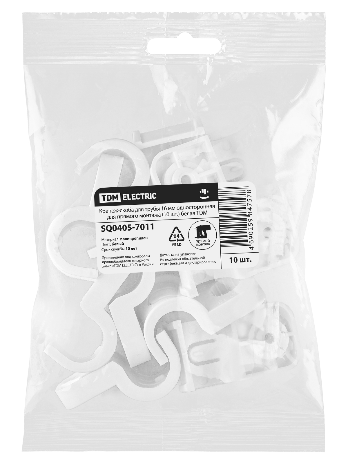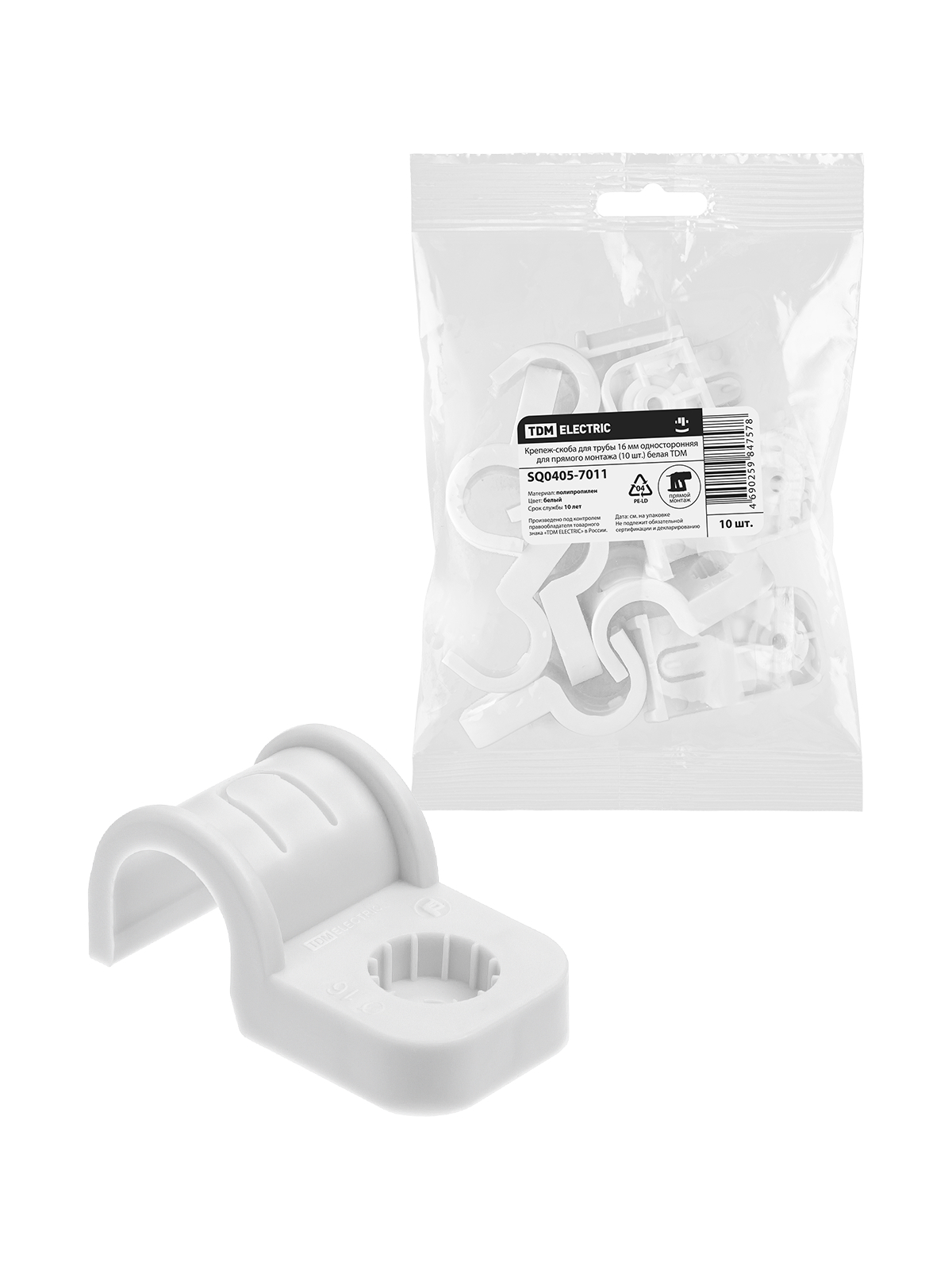 Крепеж-скоба для трубы 16 мм односторонняя для прямого монтажа (10 шт.) белая TDM