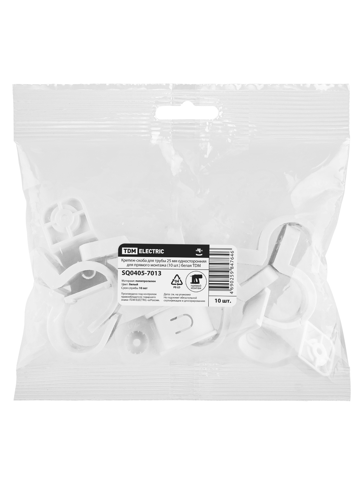 Крепеж-скоба для трубы 25 мм односторонняя для прямого монтажа (10 шт.) белая TDM