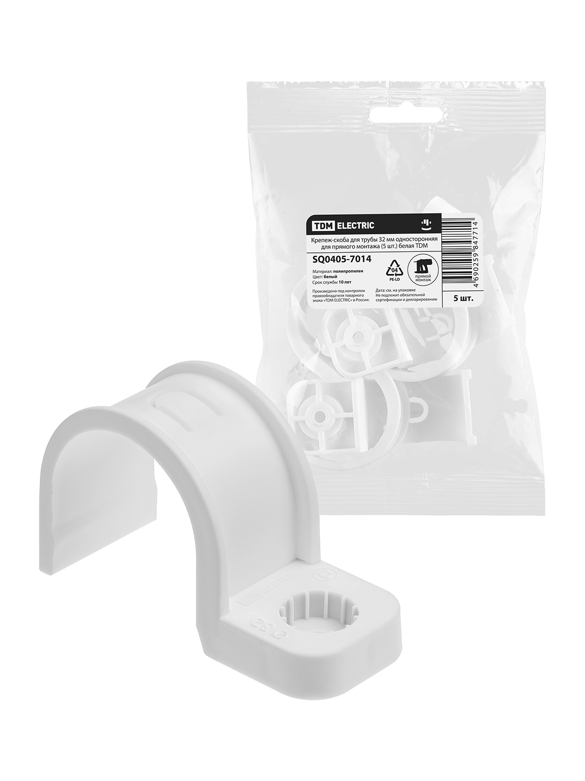Крепеж-скоба для трубы 32 мм односторонняя для прямого монтажа (5 шт.) белая TDM