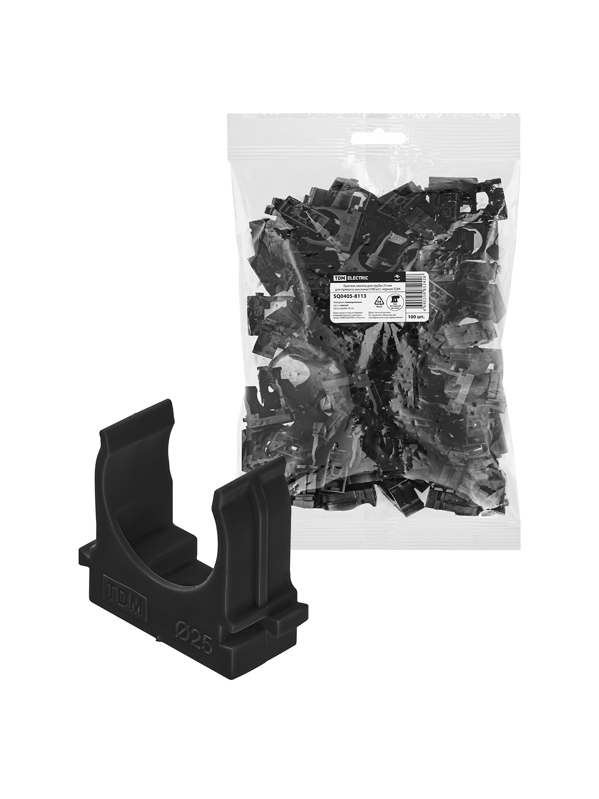 Крепеж-клипса для трубы 25 мм для прямого монтажа (100 шт.) черная TDM