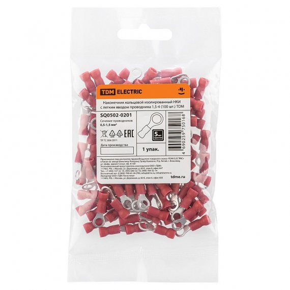 Tdm SQ0502-0201 Наконечник кольцевой изолированный НКИ с легким вводом проводника 1,5-4