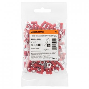 Наконечник кольцевой изолированный НКИ от TDM - это надежный элемент для электромонтажных работ. Он обеспечивает прочное крепление и защищает от вибраций. Изоляция из ПВХ и латунный контакт делают его долговечным и безопасным в использовании. Подходит для проводников сечением 1,5-5 мм². Упаковка содержит 100 штук.