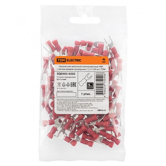 Tdm SQ0503-0202 Наконечник вилочный изолированный НВИ с легким вводом проводника 1,5-4