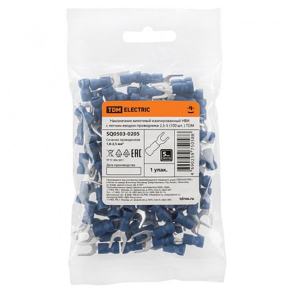Tdm SQ0503-0205 Наконечник вилочный изолированный НВИ с легким вводом проводника 2,5-5