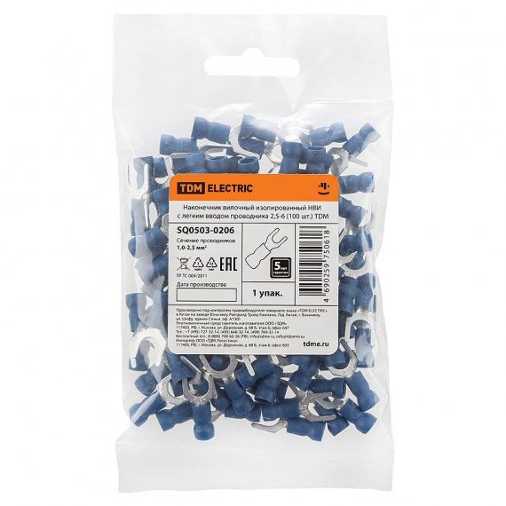 Tdm SQ0503-0206 Наконечник вилочный изолированный НВИ с легким вводом проводника 2,5-6