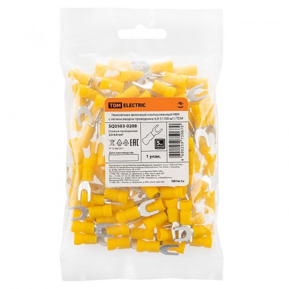 Tdm SQ0503-0208 Наконечник вилочный изолированный НВИ с легким вводом проводника 6,0-5