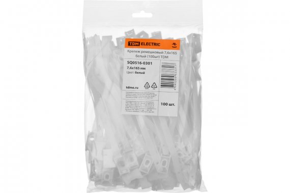 Ремешковый крепеж TDM 7,6x165 белый, 100 шт. SQ0516-0301 для крепежа и соединения в жгут кабелей и проводов. Быстрое и надежное крепление гофрированных и жестких труб к поверхности. Применяется как внутри, так и вне помещения. Наличие монтажной площадки позволяет произвести быстрый монтаж к вертикальным и горизонтальным поверхностям с помощью саморезов.