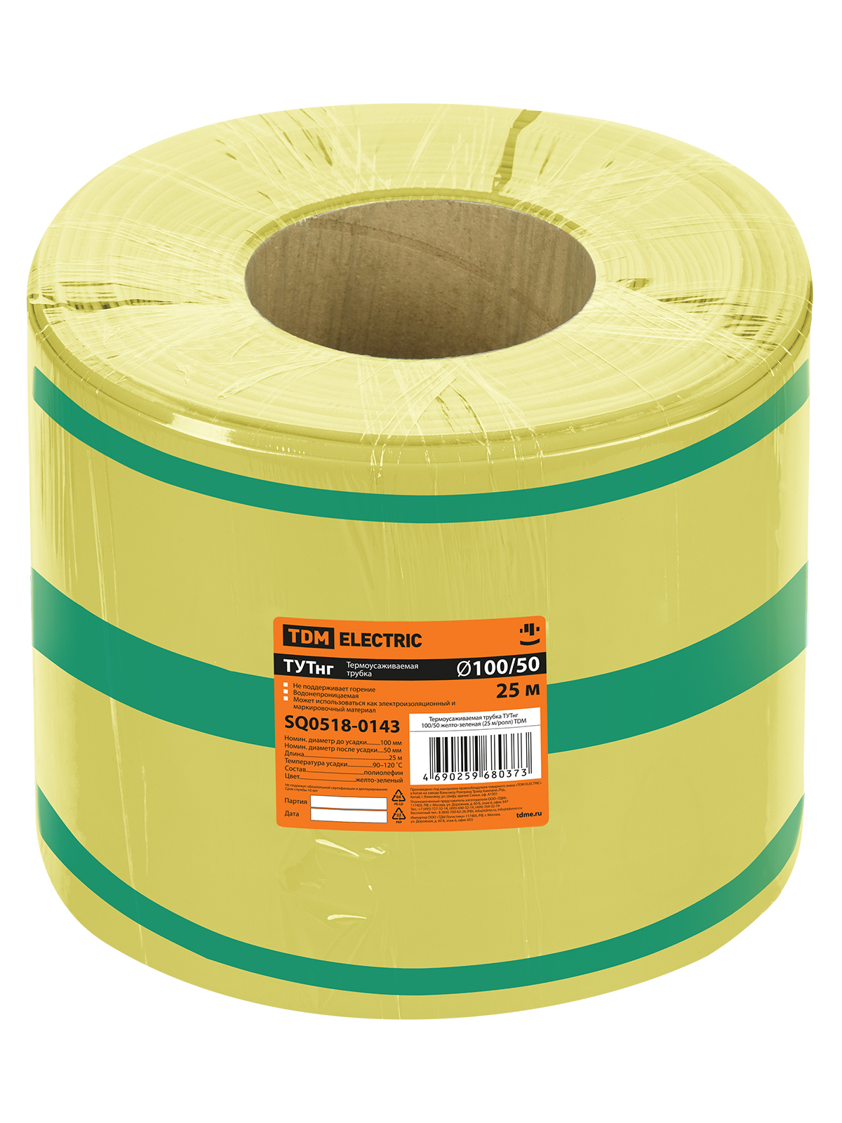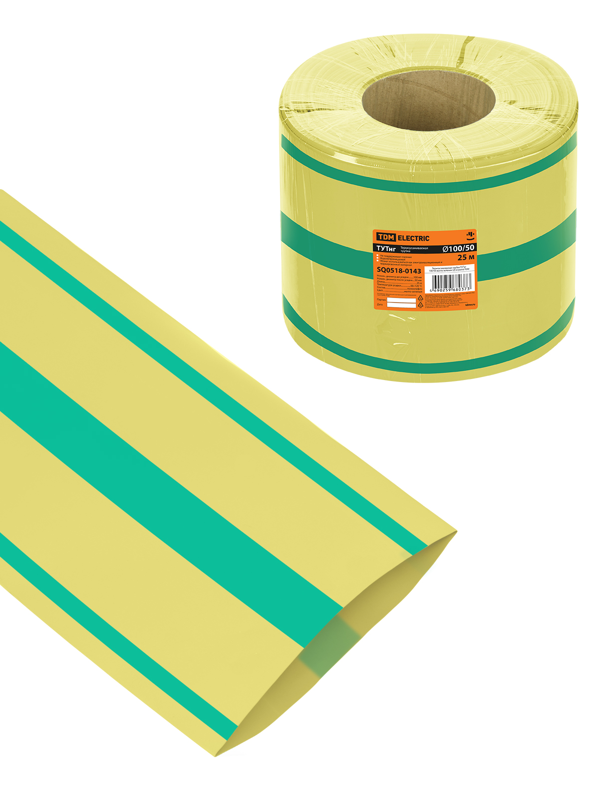Tdm SQ0518-0143 Термоусаживаемая трубка ТУТнг 100/50 желто-зеленая (25 м/ролл)