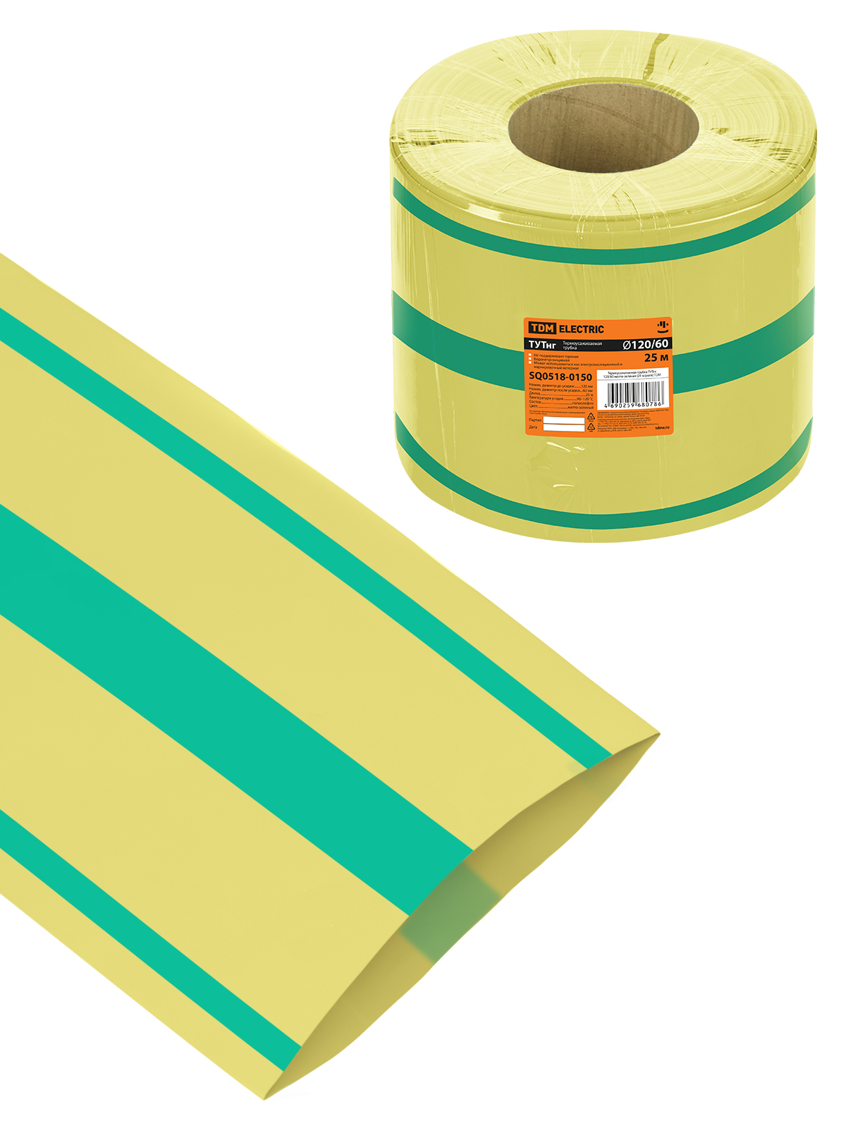 Термоусаживаемая трубка ТУТнг 120/60 желто-зеленая (25 м/ролл) TDM